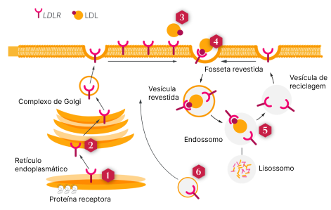 A maior parte do LDL é removida do plasma pelos receptores de LDL (LDLRs) localizados nas membranas celulares dos hepatócitos3